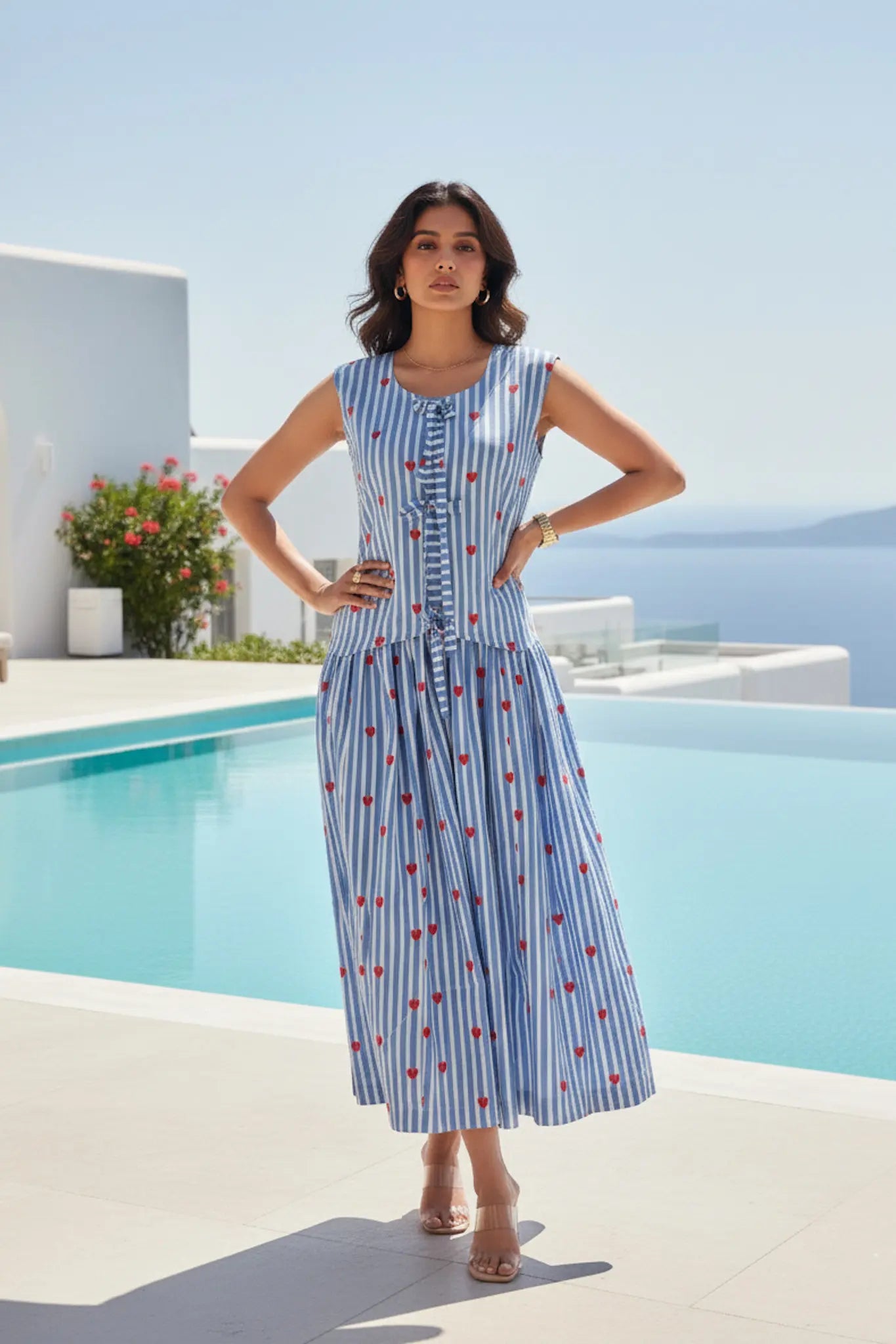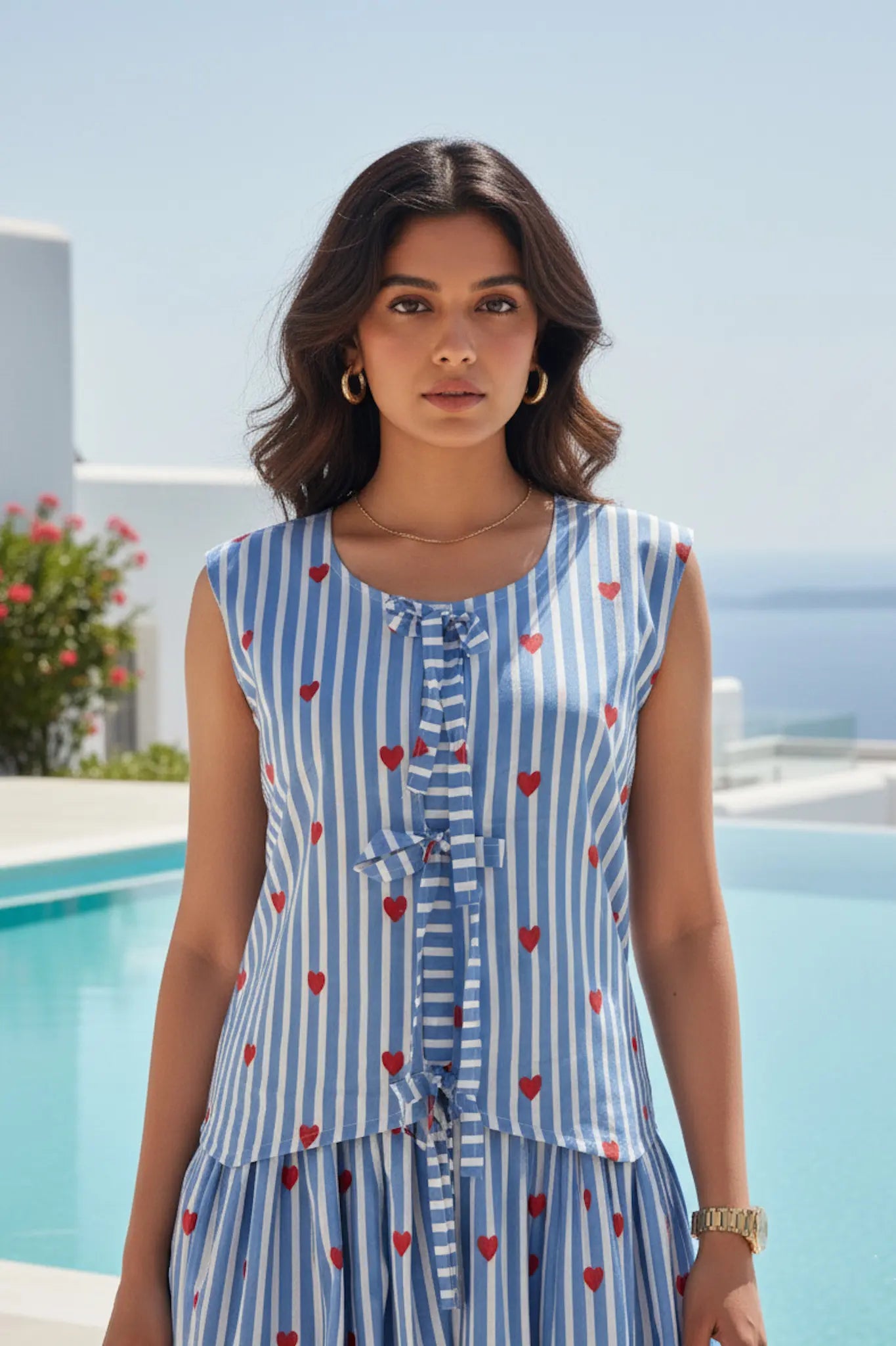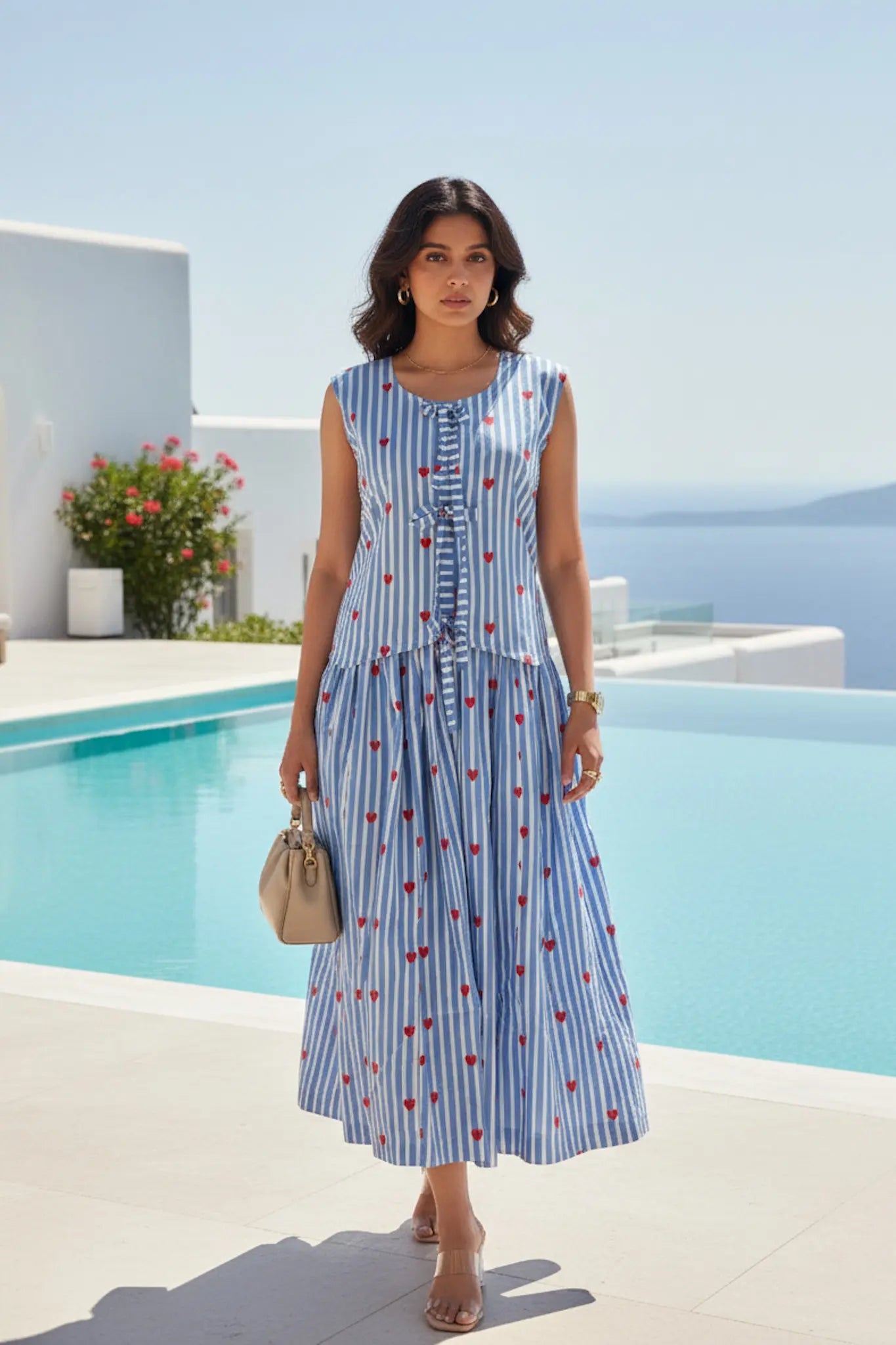 Step into timeless elegance with our striking little heart print. The set features a breezy waist coat paired with a flattering skirt — perfect for sun-drenched getaways, brunch dates, or effortless everyday glam.