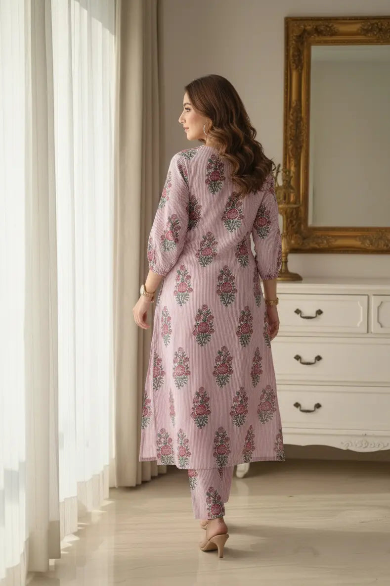 Because the fabric is hand block-printed, embroidered, and stitched by hand, slight differences or irregularities may be present. These are not flaws—they are part of what makes each piece special and one of a kind.